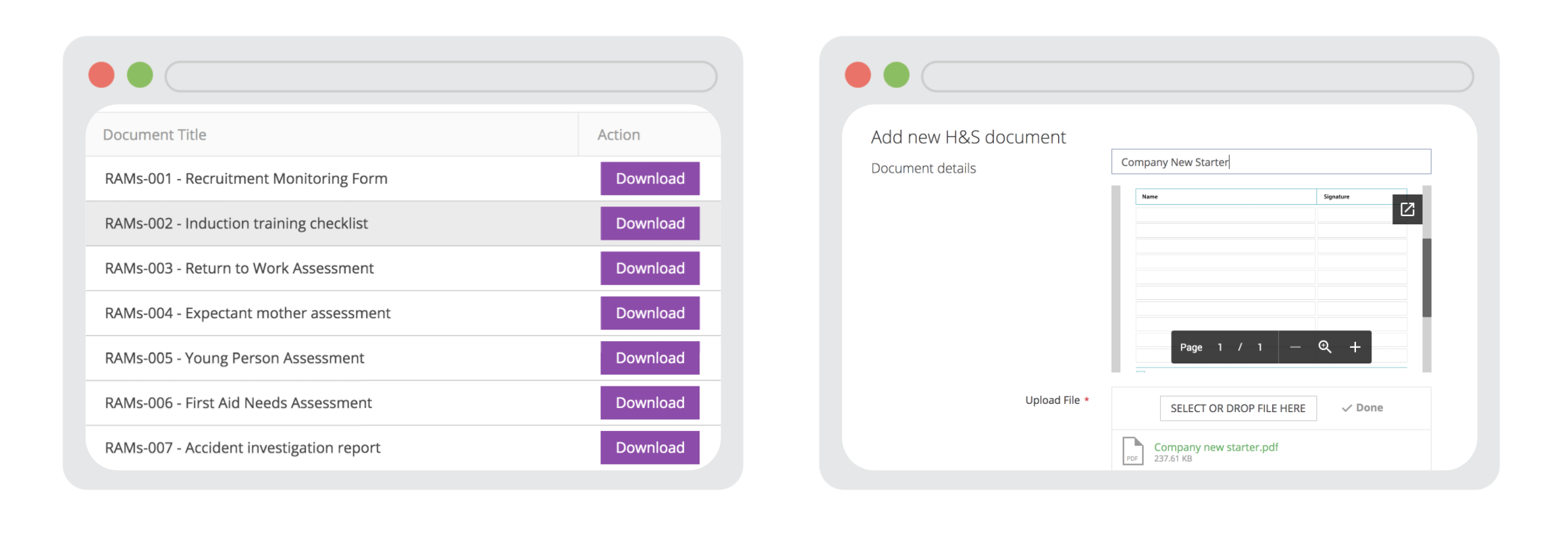 From subcontractor assessments to internal audits and many more, RAMs App’s forms and records library can help you manage your H&S processes.